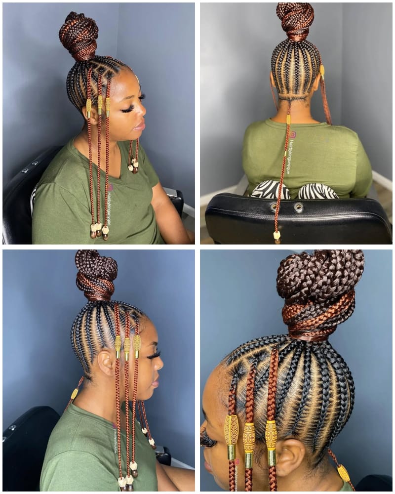 African Fulani-Inspired Cornrow Braid hairstyles with Beads and Curls